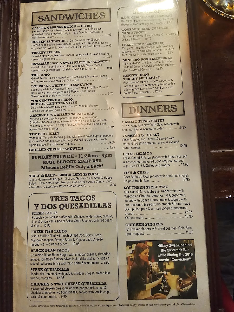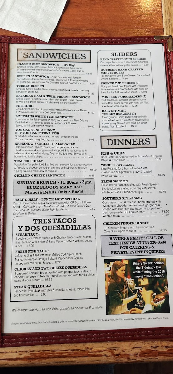 Welcome to Sidetrack Bar and Grill, a gem nestled in the heart of vibrant Ypsilanti, Michigan. This inviting bar and grill offers an eclectic mix of comfort food and casual dining in a beautifully decorated space that captures the essence of a historic depot town. Whether you're in the mood for an intimate dinner or a lively gathering with friends, Sidetrack provides a warm atmosphere that makes every visit memorable.